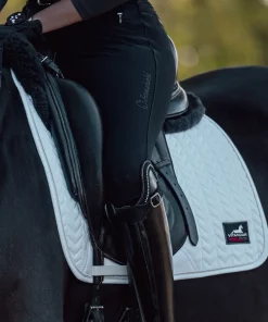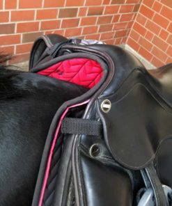 The inside is made of breathable cotton, which absorbs sweat well. An abrasion-resistant patch in the girth area protects the saddle pad from chafing from the girth. The back line is ergonomically shaped and offers a good fit even with a high withers.