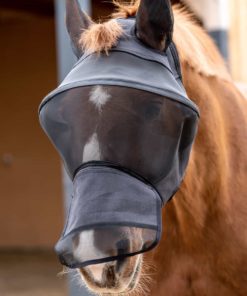 With ear and nose protection: the fly mask has ears and a removable nose flap