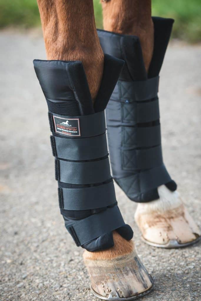 Jetzt im Winter hat Grando nachts immer noch die Stallgamaschen von Vitandar an. Diese sorgen für eine bessere Durchblutung und beugen Schwellungen in den Gelenken vor.