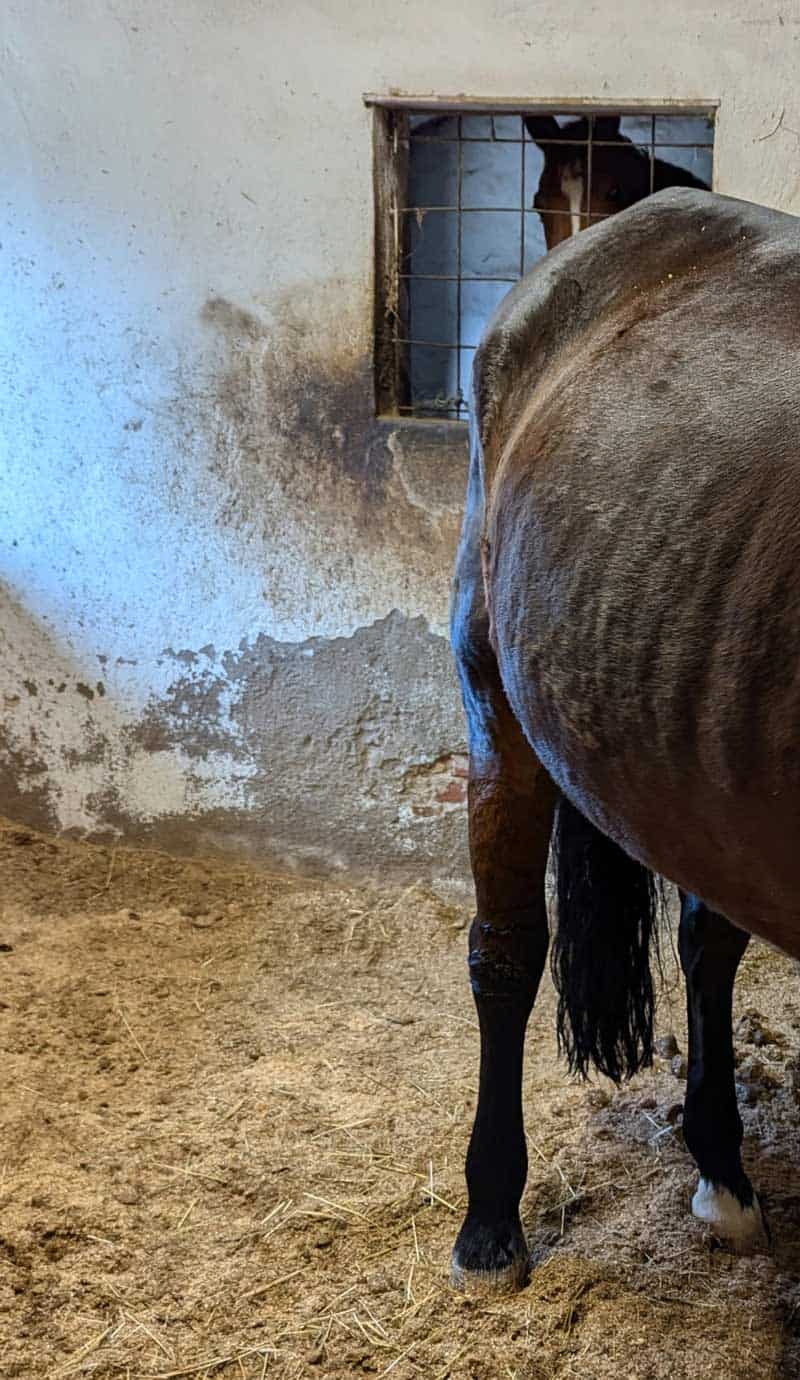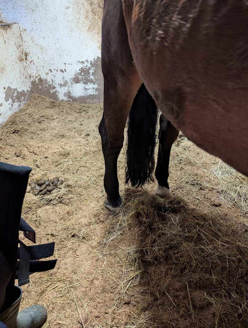 Ich muss zugeben, dass ich anfangs sehr skeptisch war. Ich wusste nicht, macht es Sinn für mein Pferd noch diese Investition (die Gamaschen zu kaufen) zu machen, oder nicht. Denn leider bringt mein Pferd mehrere Baustellen mit, er ist 20 Jahre alt, “eigentlich fit”, aber er hat ein Shivering, was ihm im Alter immer mehr zu schaffen macht und außerdem hat er vor 10 eine Kolik -OP gehabt, weshalb sich bei ihm ein Lymphödem im rechten Hinterbein gebildet hat. Dies Lymphödem ist eigentlich unsere größte Baustelle, da die Schwellung das komplette Bein betrifft.